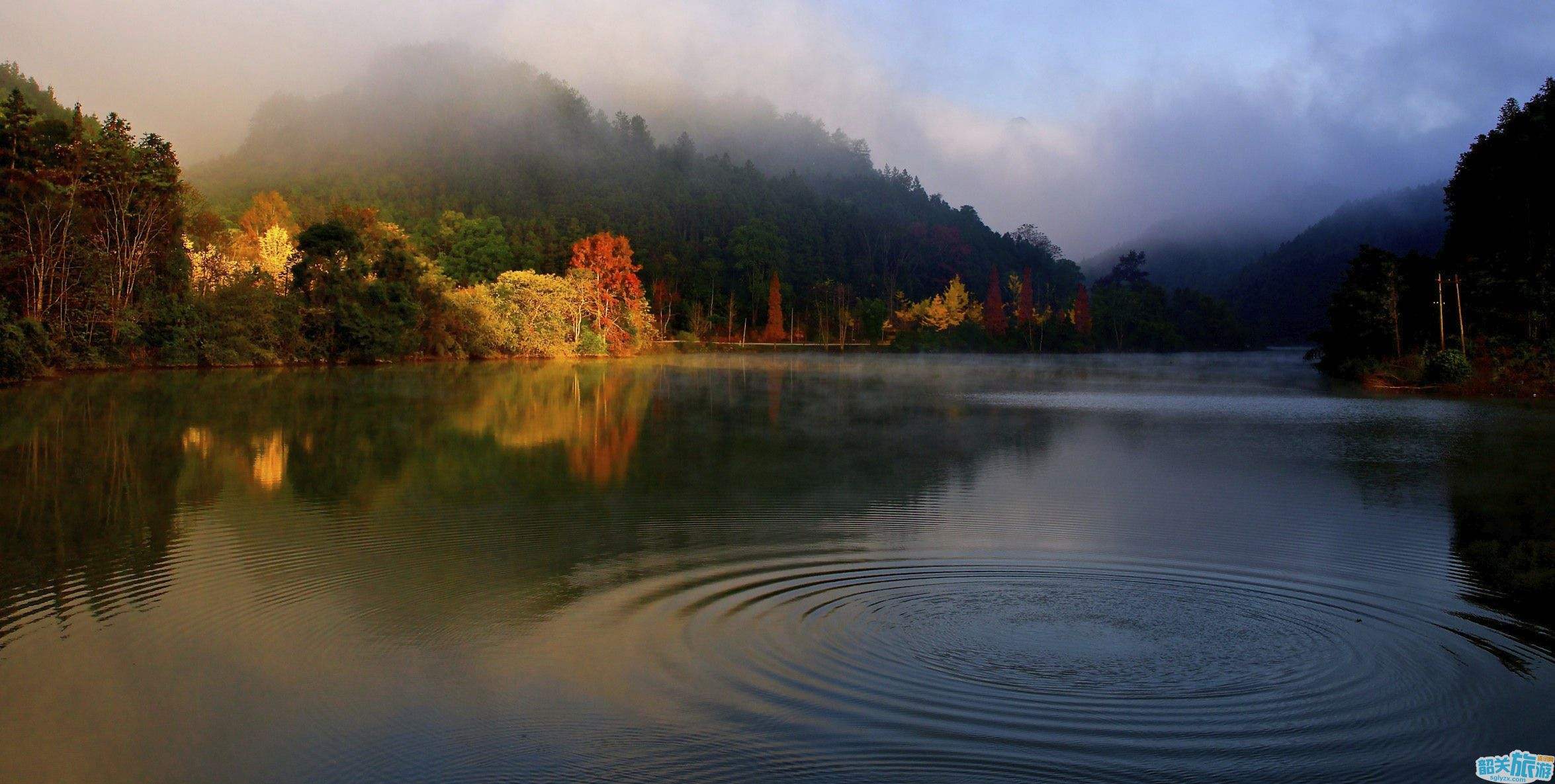 ![]() 田排景区包括了大田排和小田排,有粤北"九寨沟"的美誉。清晨晨雾飘渺,云雾倒影,山光水色,晨光透过金色的枫林折射在湖水中璀璨成花,色彩斑斓的景像,让人恍如五彩瑶池落入人间的感觉,仿佛置身于美妙的世外天地,让游人留恋忘返。